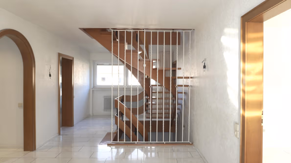 Diese moderne 5,5-Zimmer-Wohnung – angrenzend an ein Wohn- und Geschäftshaus – befindet sich in einer familienfreundlichen und gefragten Lage in Laudenbach.