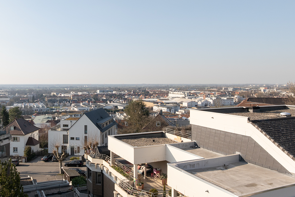 Auf ca. 146 m² Wohnfläche im 1. Obergeschoss erwartet Sie ein weitläufiges Wohn-/Esszimmer mit Zugang zur wunderschönen Terrasse und herrlichem Blick auf die grüne Umgebung sowie in die Rheinebene.
