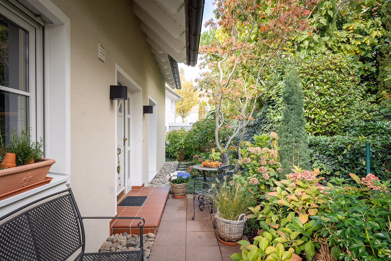 Der liebevoll angelegte Garten bietet viel Raum für gesellige Stunden im Freien – ob Gartenfeste, Grillabende oder einfach zum Entspannen. Eine Garage sowie zwei Außenstellplätze mit direktem Zugang zum Garten vervollständigen dieses rundum attraktive Immobilienangebot.