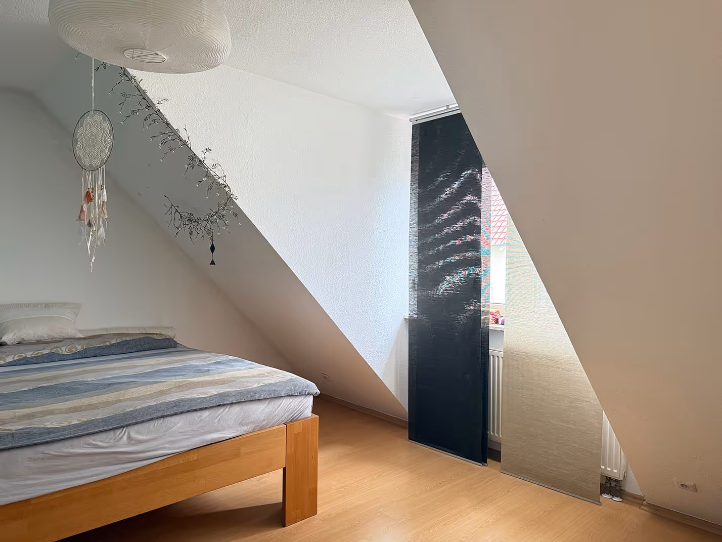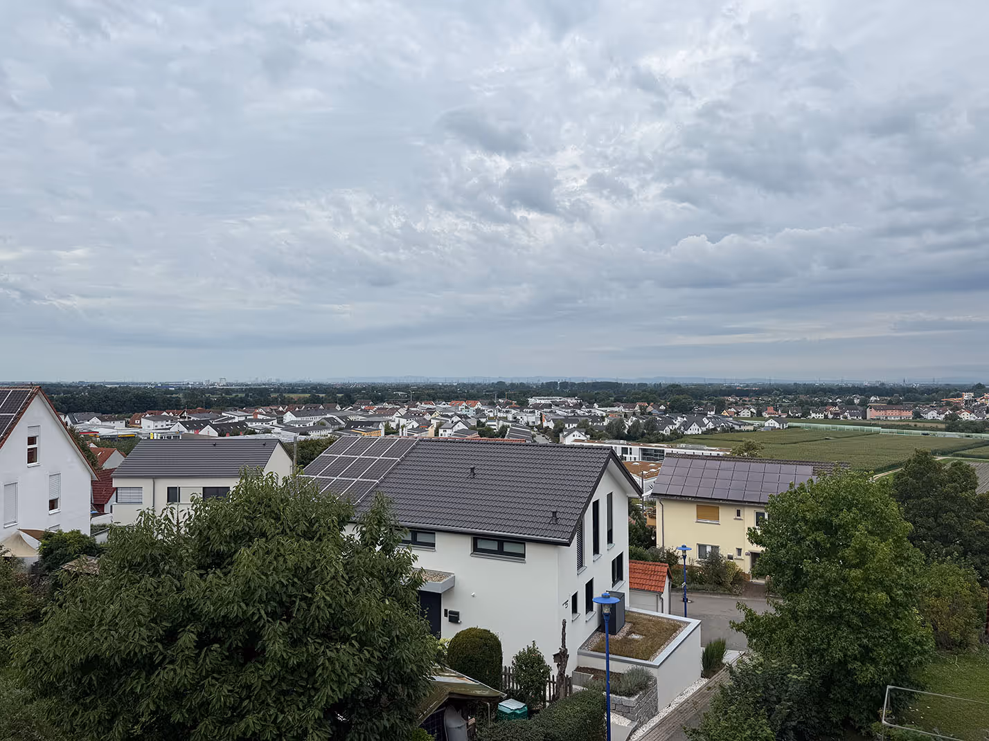 Über eine elegante Treppe gelangen Sie in das Dachgeschoss, das zwei geräumige Schlafzimmer und ein modernes Tageslichtbad mit Badewanne bietet. Ein zusätzlicher Dachbalkon eröffnet einen traumhaften Blick über die Rheinebene – ideal, um den Tag gemütlich ausklingen zu lassen.