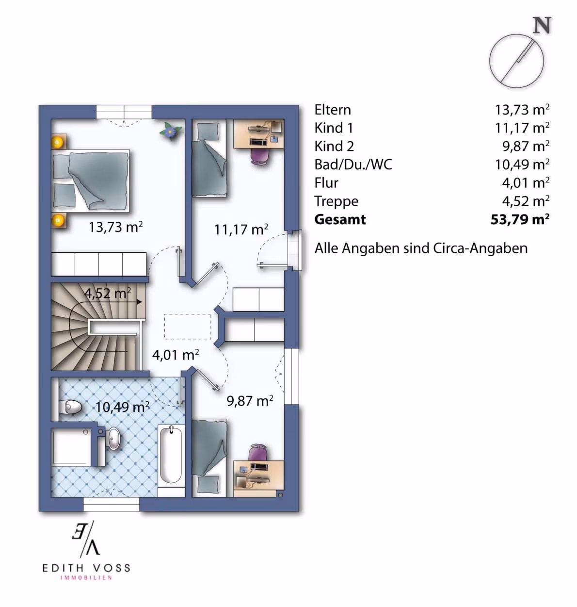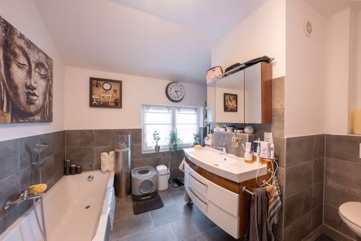 Im Obergeschoss stehen Ihnen drei geräumige Schlafzimmer sowie ein modernes Familienbad mit Badewanne und Dusche zur Verfügung. Der Speicher bietet zusätzlichen Stauraum und sorgt für weitere Abstellmöglichkeiten.