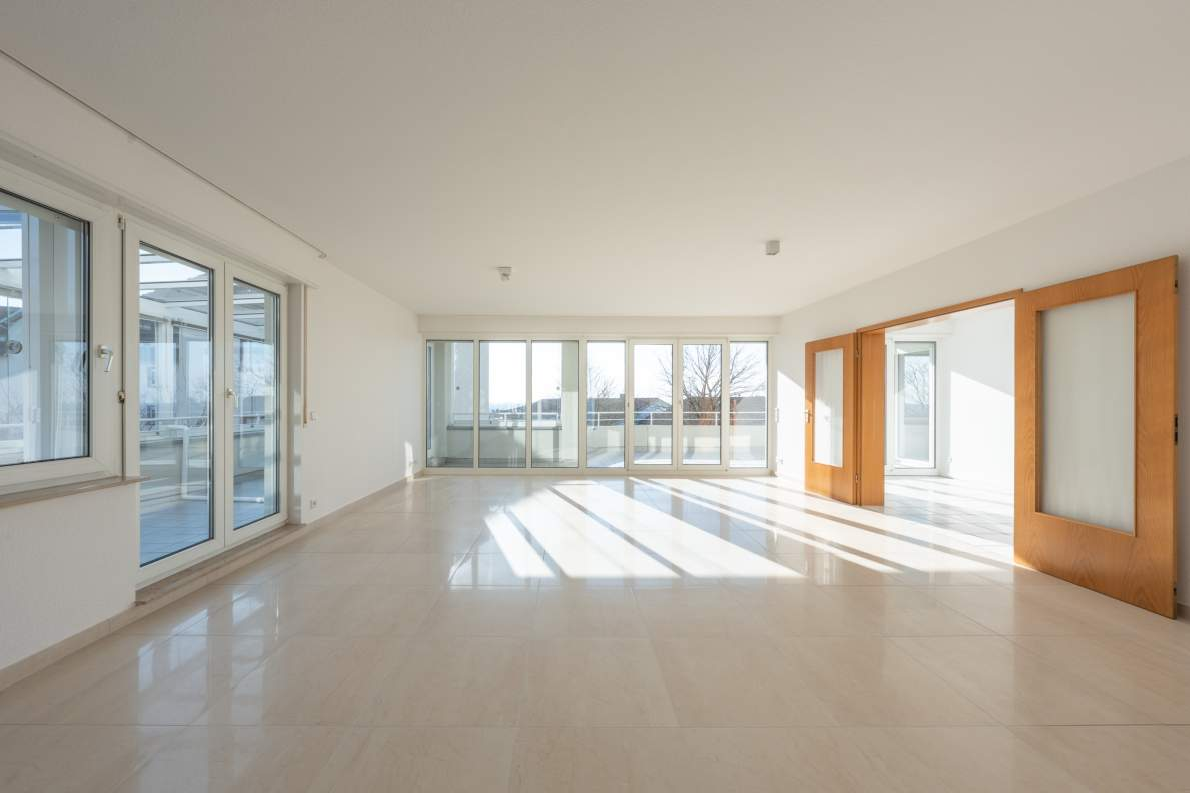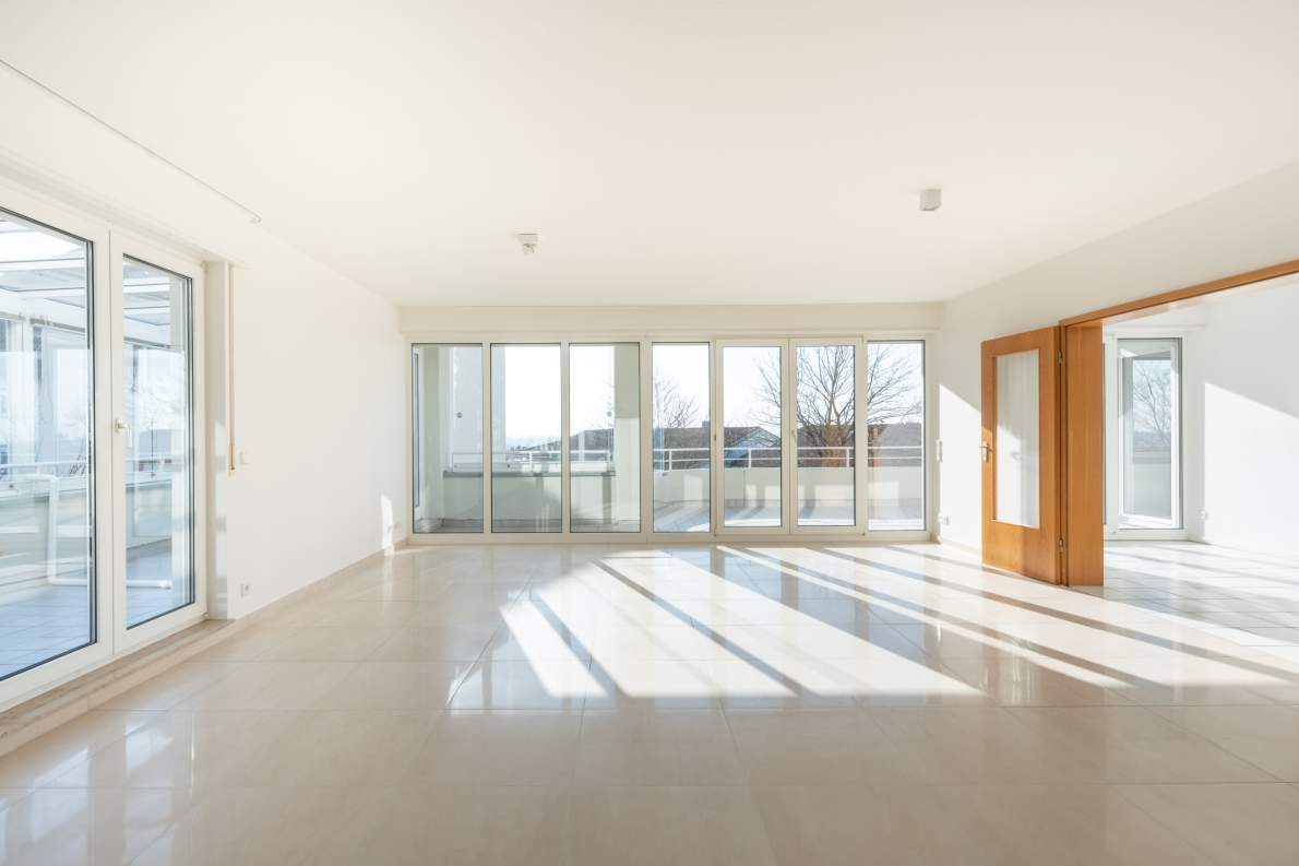 Zu den besonderen Highlights zählt das lichtdurchflutete Wohn-/ Esszimmer mit Zugang zur großzügigen Südterrasse – perfekt, um sonnige Stunden und Sonnenuntergänge zu genießen.