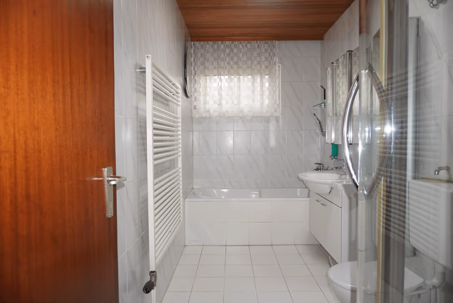 Die zweite Doppelhaushälfte umfasst ca. 122 m² Wohnfläche und ist mit einem offenen Wohn– und Essbereich mit Terrassenzugang, einer abgetrennten Einbauküche mit angrenzender Speisekammer, drei großzügigen Schlafzimmern, zwei davon ebenfalls mit Terrassenzugang, einem Tageslichtbad und einem Gäste WC ausgestattet.