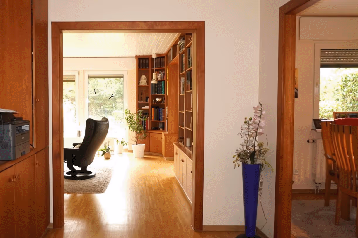 Diese freistehenden Doppelhaushälften im Bungalow–Stil mit einem traumhaften, weitläufigen Garten auf einem großzügigen Grundstück von ca. 1.090 m² wurden 1970 erbaut und überzeugen durch ihre gelungene und durchdachte Raumaufteilung. Gemeinsam bieten die beiden Einheiten eine Gesamtwohnfläche von ca. 228 m² und eignen sich ideal für Familien oder Paare mit Platzbedarf.