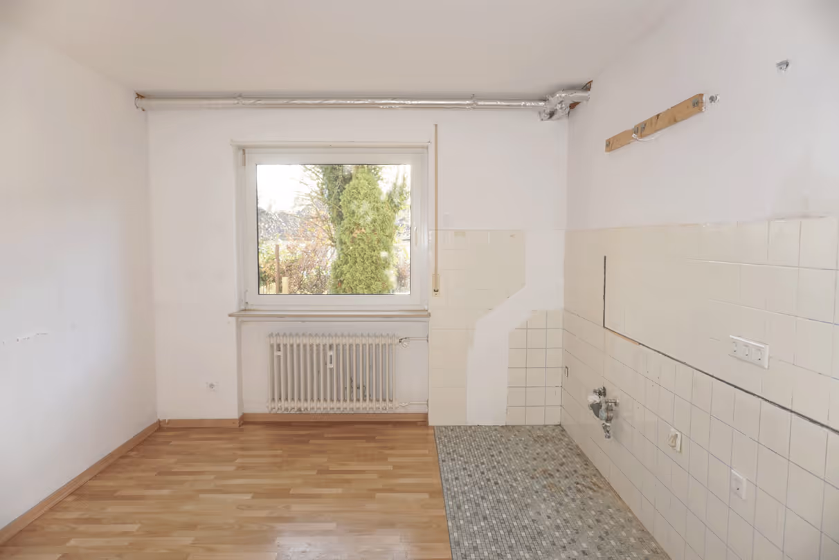 - Obergeschosswohnung: Bäder saniert, Holzdeckenverkleidung angebracht und Einbauküche installiert.