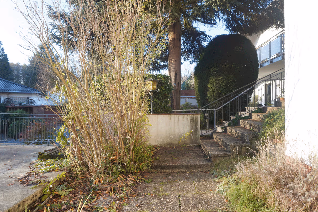 Im Erdgeschoss erwartet Sie eine renovierungsbedürftige Wohneinheit mit einer Wohnfläche von ca. 98 m². Hier befinden sich ein lichtdurchflutetes Wohnzimmer mit Zugang zur Terrasse und zum Garten, eine Küche, zwei Schlafzimmer, eines davon ebenfalls mit Zugang zur Terrasse, sowie ein helles Tageslichtbad mit Wanne und Dusche. Diese Wohnung ist zur Zeit nicht vermietet und könnte kurfristig renoviert werden.